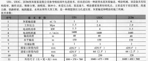 UB1型活塞式灰漿泵是我公司參考吸收國外較先技術,并經改進后的一種新型雙液輸送設備,可同時分別泵送兩種不同的液體,也可將兩種不同的液體分別吸入自動混合后加壓排出,且比例可調。具有操作方便,易損件少,故障率低等優點。可用來輸送灰(砂)漿、黃泥漿、水玻璃、油、水等多種介質,廣泛應用于隧道、礦井采掘工作面注漿堵水,化工、食品生產企業輸送液態原料,巖巷及混凝土井壁注漿堵漏水,隧道裂痕,破碎巖體,疏散巖石的加固補強,錨固注漿,回填注漿和防止地表下沉,防止滑坡,糾正建筑物偏斜所進行的注漿等。